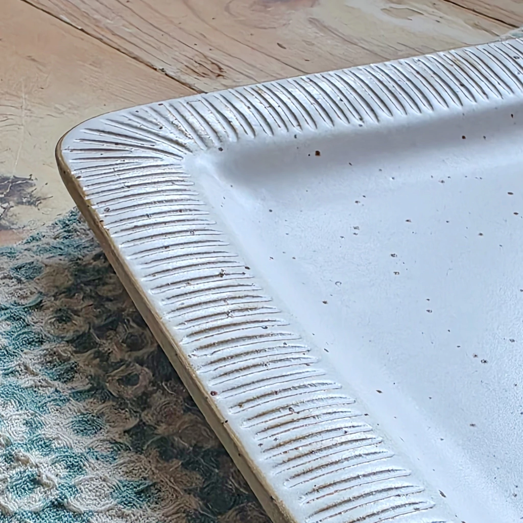 Bandeja de cerámica, gres moteado. Modelada a mano.