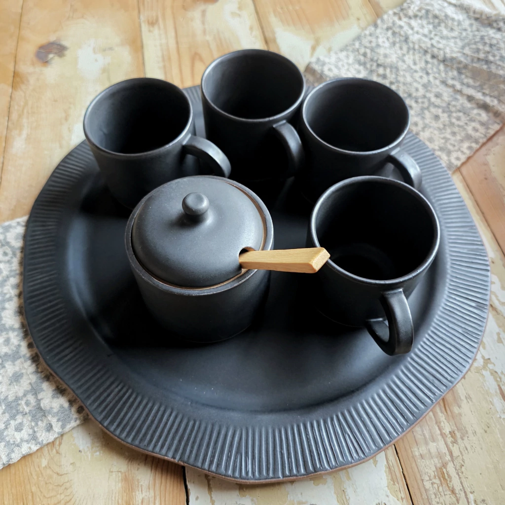 Utilizamos un esmalte de aspecto semi mate, que hemos desarrollado para el uso de vajilla.