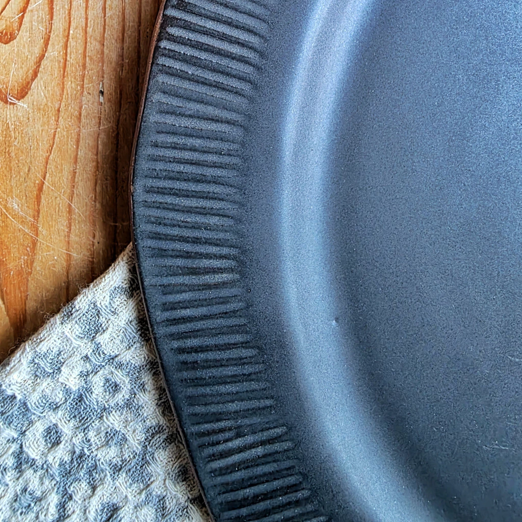 La superficie en contacto con los alimentos se encuentra esmaltada, suave al tacto y se perciben visualmente las motas oscuras de la pasta.