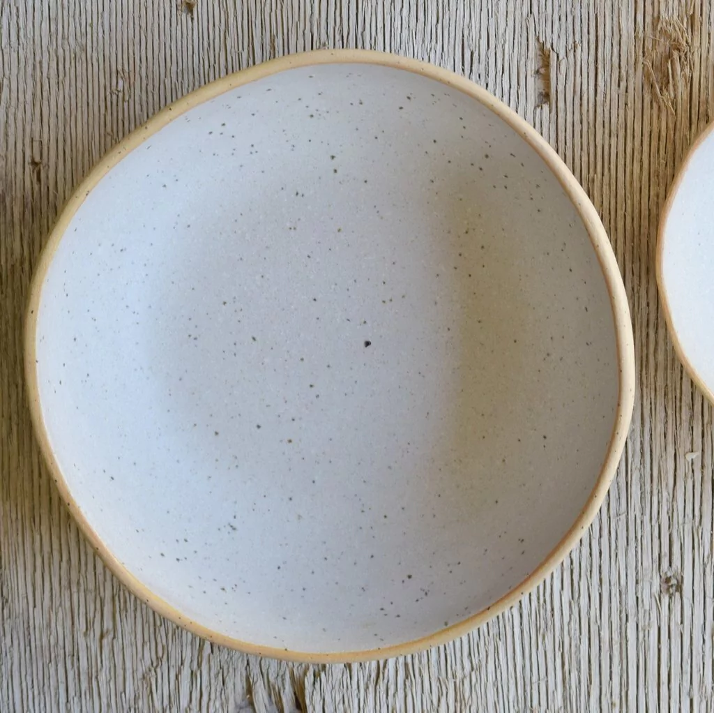 Utilizamos un esmalte blanco ceniza, de aspecto semimate, que hemos desarrollado para el uso de vajilla.