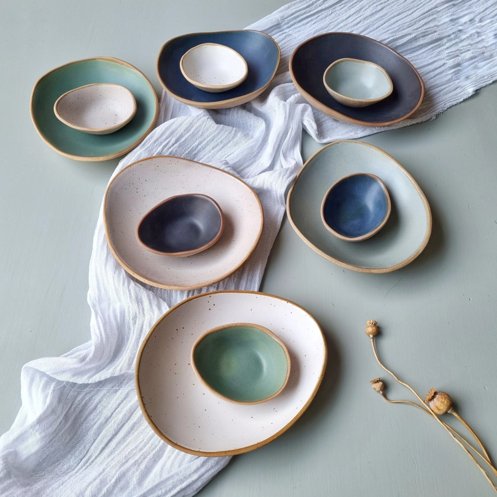 Cada pieza está hecha y esmaltada individualmente a mano. Pueden encontrarse ligeras variaciones en la forma y el color las que consideramos parte de la belleza de cada pieza.