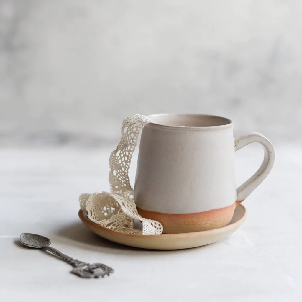 Utilizamos un esmalte blanco ceniza, de aspecto semi mate, que hemos desarrollado para el uso de vajilla.