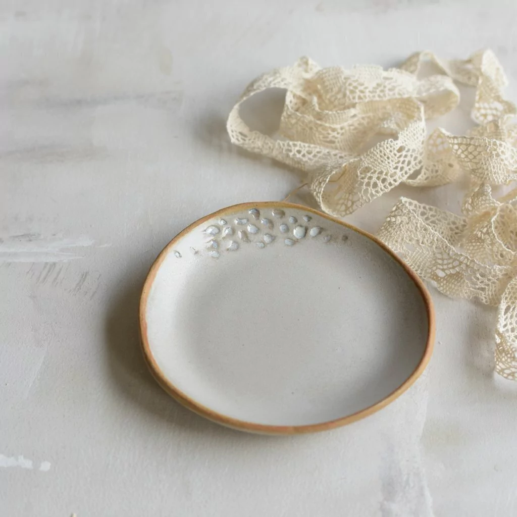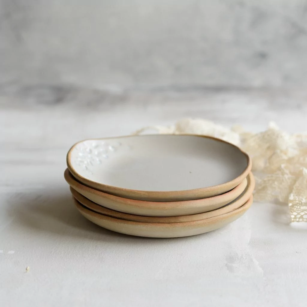 Medidas del plato: 2 cm de alto irregular x 14 cm diámetro irregular.
