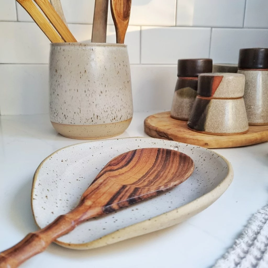 Posee una sutil depresión para apoyar la cuchara u otro utensilio mientras se está cocinando.