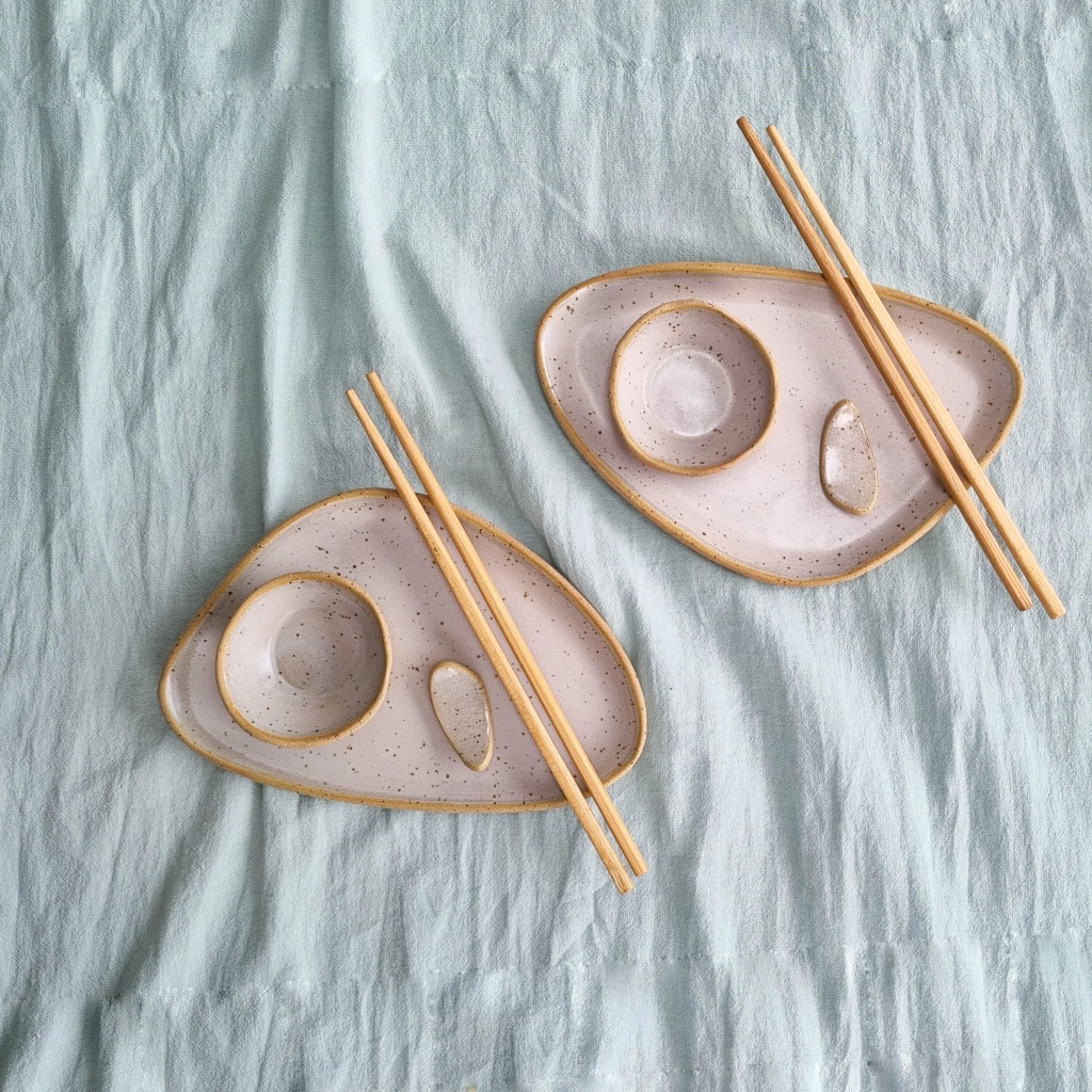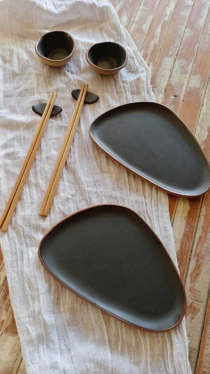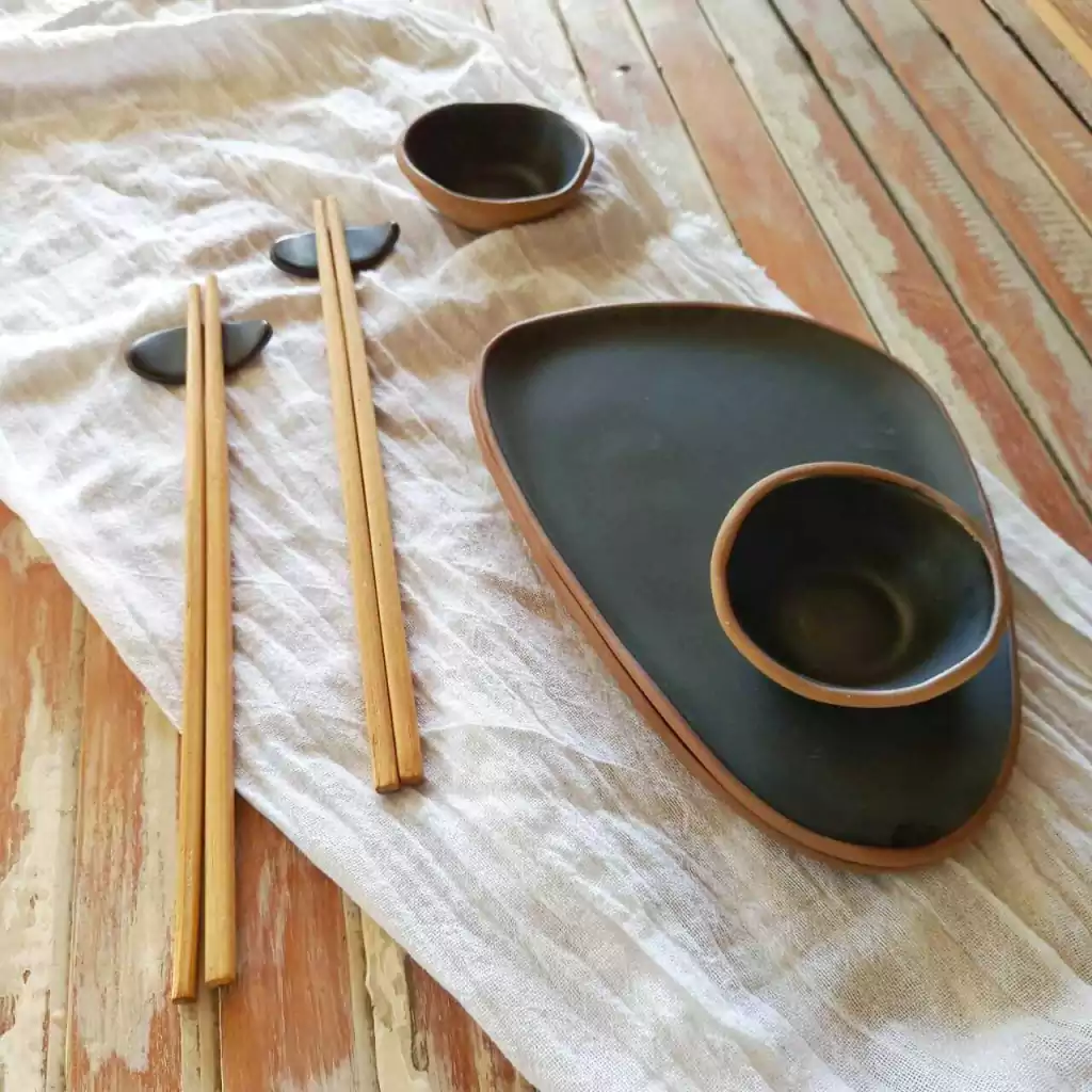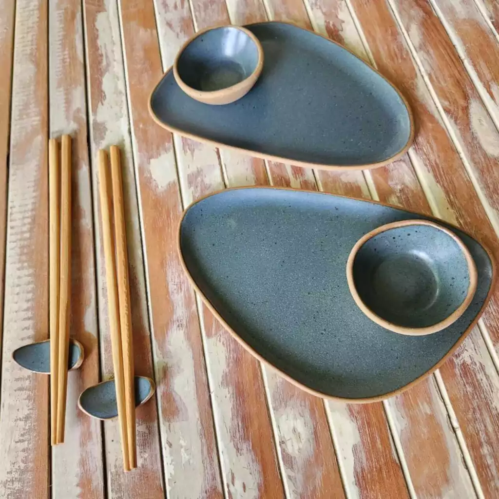 Set de sushi para 2 personas realizado en gres. Modelado a mano.