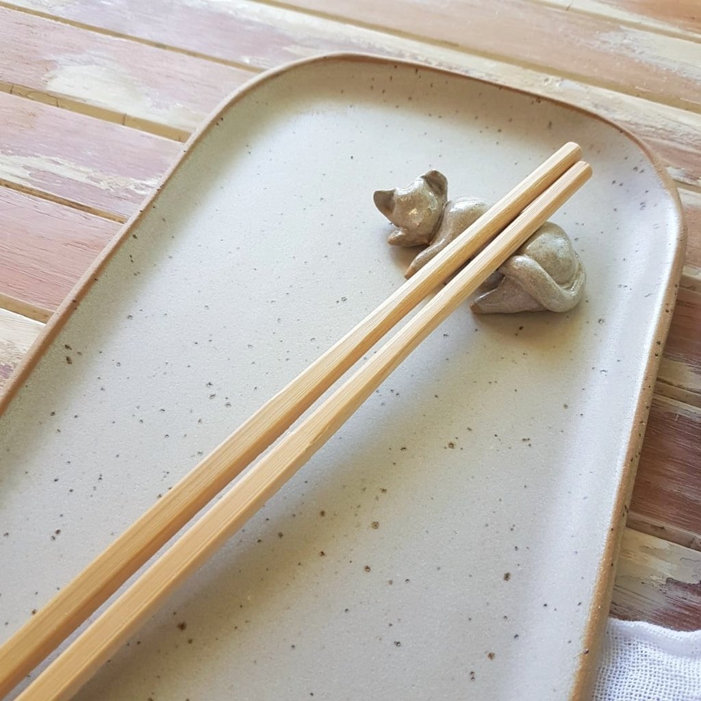 El set se compone de 2 plato/bandejas rectangulares con muy buena capacidad, 2 cuenquitos para la salsa de soja y 2 posa palitos con forma de gatito / pececito / rectángulo, según disponibilidad (no incluye los palitos).